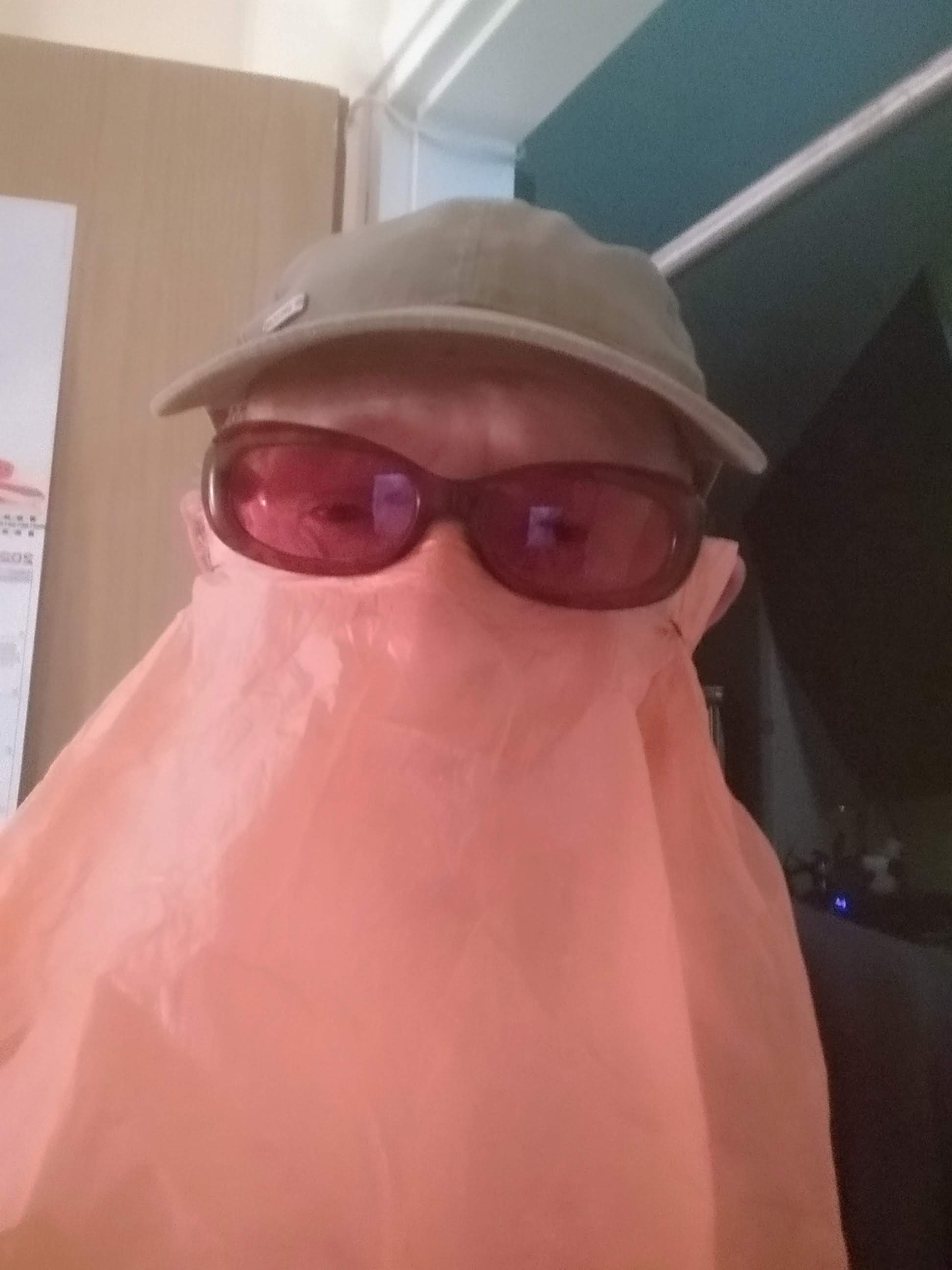Предлагается применение в качестве защитной маски полиэтиленовый пакет с ручками, обычно используемый при покупке продуктов на рынке или в магазинах.
